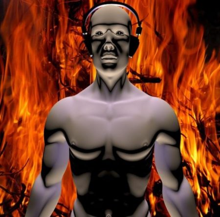 Featured Image Of A Seated Fiery Angel Holding A Fiery Guitar.