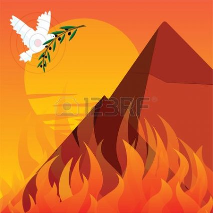 Simple wordplay=Pyramids= pyre amidst= fire in the middle…???