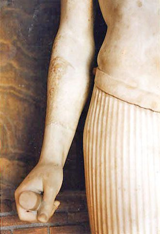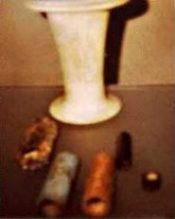 in his hands are clutched a pair of “…cylindrical objects…”.