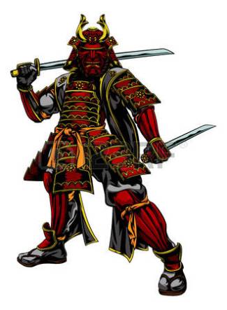 Image Of A Japanese Samurai Armored With Sword Raised.
