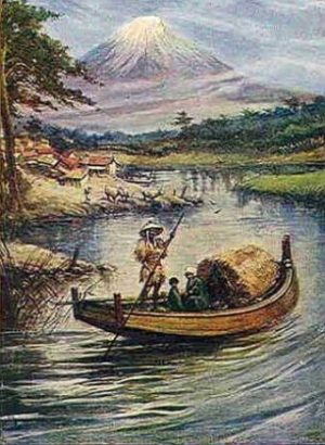 Some time after the SMASHING LEGEND events… SASUKE, the BOAT-MAN of SHIMONOSEKI had heard the rumors. There was little that happened in the MOUNTAINS of NAGATO and KAZASHI that bypassed his ears. His position as taxi and cargo carrier was prime for information. The figure slowly approaching his boat at 8 IN THE MORN seemed to confirm the dreaded News. A DUEL between two of JAPAN’s MASTER SWORDSMEN had supposedly been arranged. Passage required to FUNASHIMA..,SASUKE soon had the boat at speed. The tide was high and with the wind at his back, gladly informed his PASSENGER they would ARRIVE AROUND 10. Soon enough he turned back to his task.., almost chuckling at the strange ways of some folk. His PASSENGER had.., to pass the time SASUKE thought, asked to have a piece of WOOD from the boats spare/emergency pile… to do some CARVING. The MAN was going crazy, SASUKE thought too. CARVE.?. at a time like this.??. SASUKE turned back to the figure sharply… TWO things were noticed… a largeish pile of WOODCHIPS lay in the boat’s bottom… and the MAN… HAD NO LONG SWORD …that he could see??? The PASSENGER was and had been almost nonchalant… were the rumors wrong.?. or… How could there be a DUEL then .?. has it already been done…or.?. SASUKE’s mind raced. The WOODCHIP pile grew and stray pieces lightly whirled in the wind as the boat streamed into the inlet… The surging tidal water was blue and the bottom clear and visible as SASUKE responded quickly and slowed the boat whilst still some 50+ metres off-shore just as the PASSENGER, tying a HEADBAND, had asked… and coasted to a stop. He turned…to see the PASSENGER… and WOOD-CARVING he still carried, jump into the sea. At the same time, a figure on the shore ran their way – a very long SAMURAI LONGSWORD held prominently in their hands. SASUKE tried to voice a WARNING to his PASSENGER… but, as is the way of such things…a lil’ too late. On the shores of FUNASHIMA.
