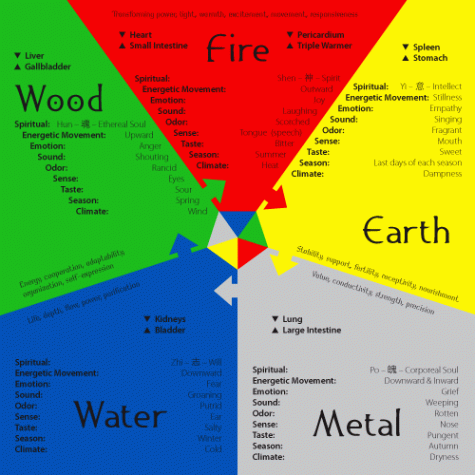 A Set Of Five. Elements. Wood, Fire, Earth, Void, Water.