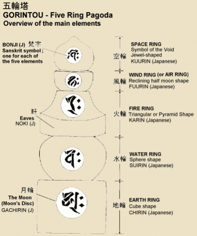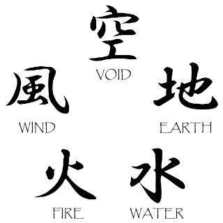 Earth,.. Water,.. Fire,……… Wind,…… Void.