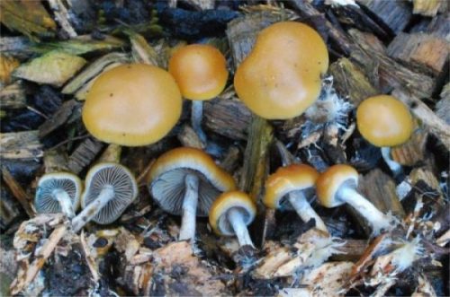 photocredit/thanks:shroomery NATURE’s STONES of PHILOSOPHY: These Be PSILOCYBE … AUSTRALIANA/SUBAERRUGINOSA… aka GOLDTOPS. PLEASE NOTE the BLUE TINGE on the MOON WHITE STEMS… BROWNISH HINTS UNDER CAP With WHITE surrounds etc…TOO.