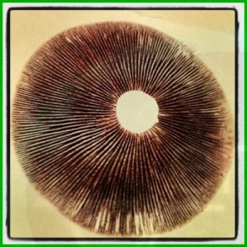 SPORE/SEED PRINT OF PSILOCYBE MUSHROOM… CHOCO BROWN FROM A GOLDEN MOON OF WHITE… AND BLUE. PHILOSOPHISE INDEED. photocredit/thanks:alibaba