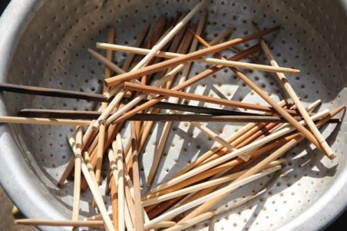 Is to… grab a stack of the large wood squareish ChopSticks;..